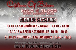 Halo Of Blood Over Europe 2013 1993 im zarten Jugendalter gegründet, sollten CHILDREN OF BODOM die weltweite Musikszene bereits vier Jahre später mit einer Debütscheibe in grenzenloses Staunen versetzen, die ihrem Namen mehr als gerecht wurde – “Something Wild”. Fortan wuchs sich der weitere Werdegang des finnischen Fünfers zu einer ihresgleichen suchenden, bis heute von anderen skandinavischen Nachwuchs-Metal-Exporten unerreichten Erfolgsgeschichte aus. Gefolgt vom 1999er „Hatebreeder“ und der Jahrtausendwenden-Veröffentlichung „Follow The Reaper“, setzten die ersten drei COB-Alben via Nuclear Blast im Bereich des brutalen, schnellen und doch hochmelodischen Heavy Metal neue Maßstäbe und begeisterten insbesondere durch den unheimlich talentierten Alexi Laiho, der in der Folge – neben zahlreichen weiteren Auszeichnungen – von den Lesern des renommierten „Guitar World”-Magazins zum „best metal guitarist” gekürt wurde. Vier weitere Killer-Scheiben – namentlich “Hate Crew Deathroll” (2003), “Are You Dead Yet?” (2005), “Blooddrunk” (2008) und “Relentless Reckless Forever” (2011) – ließen sukzessive modernere Einflüsse Einzug in den Stil der Finnen halten, ohne dass diese jemals ihre charakteristische Mischung aus rauen Vocals, massiven Riff-Attacken und eingängigen Keyboard-Klängen vernachlässigt hätten. Eine Erfolgsformel, die für jedes der vier letzten Alben einen #1 in den finnischen Albencharts sowie Goldstatus für die gesamte Band-Diskographie – mit Ausnahme der Platte “Follow The Reaper”, die gar mit Platin (!) geadelt wurde - nach sich zog! Darüber hinaus richteten sich CHILDREN OF BODOM über die Jahre häuslich auf den größten Bühnen der Welt ein – auf den wichtigsten Festivals wie dem Wacken:Open:Air, Hellfest, Graspop, Loud Park Festival und Bloodstock wurden sie zu regelmäßig wiederkehrenden und jedes Mal frenetisch gefeierten Gästen, während ausgedehnte Tour-Aktivitäten ihnen rund um den Globus eine riesige Anhängerschaft bescherten.