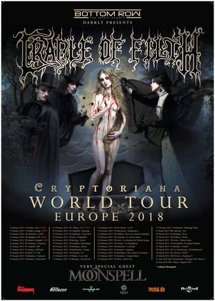 Manchmal sind die Monster nur allzu real. Wir leben in immer dunkleren Zeiten und es ist die Pflicht der inspiriertesten Musiker, einen Soundtrack zu erschaffen, der sowohl Realitätsflucht, als auch eine gesunde Dosis tragischer Weltgeschichte bietet. Über das letzte Vierteljahrhundert hinweg haben CRADLE OF FILTH die Rolle der düsteren Tagebuchschreiber des Metals übernommen, die die gestaltlosen Schrecken erforschen, die versteckt in den Schatten unserer Menschheit lauern. Getrieben von düsterer Romanze und dem sinnlich Grotesken schwelgten sie in der Opulenz der Todsünden von verschiedenen Jahrhunderten.1991 in England gegründet, erweckten CRADLE OF FILTH mit ihren Demos sofort Aufmerksamkeit im musikalischen Untergrund, bevor sie 1994 der aufkeimenden Black und Death Metal Szene Großbritanniens ihre Durchschlagkraft demonstrierten mit ihrem Debütalbum „The Principle Of Evil Made Flesh“. Ihre ungeheuerliche Mischung aus elegantem Terror und prügelnder Gehässigkeit hob die Band aus der Menge hervor, und demonstrierte sie als eine der wenigen modernen Bands, die fähig sind, harte Klänge voranzutreiben, ohne dabei deren Traditionen und Wurzeln zu schänden. So überrascht es nicht, dass die Kombination aus sinnträchtigen Liedtexten von Frontmann Dani Filth und dem einprägsamen Image der Band rasch dafür sorgte, dass die Musik von Cradle kein kurzlebiges Phänomen war, sondern seit nunmehr fast drei Dekaden die Welt in Atem hält. Eine kompromisslose Reihe von erinnerungswürdigen und stilprägenden Studioalben sorgte dafür, dass die Band stets im blutigen Auge des öffentlichen Interesses blieb und trotz vieler Line-Up-Änderungen und stilistischen Experimenten schlitterten CRADLE OF FILTH doch von Ruhmeshalle zu Ruhmeshalle.