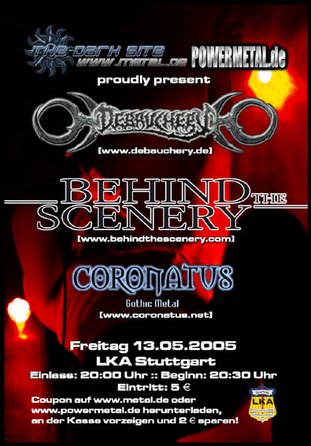 BEHIND THE SCENERY. Die Göppinger Formation spielt progressiven Melodic Death Metal in der Schnittmenge aus Opeth, Dark Tranquillity und Disillusion. Ausgereifte Kom¬positionen auf internationalem Niveau, grandiose Spannungsbogen und große Melodien setzen die Jungs live mit der Power von drei Gitarren um! Absolut hörens- und sehenswert!