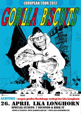 GORILLA BISCUITS Muss man zu der Band noch viel sagen? Eigentlich nicht ... denn mit den Gorilla Biscuits aus New York City kommt die wohl wichtigste, einflussreichste und erfolgreichste SXE Hardcore-Band nach Europa....... Anthony "Civ" Civorelli, Walter Schreifels, Alex Brown, Luke Abbey, Arthur Smilios a.k.a. Gorilla Biscuits sind zurück!
