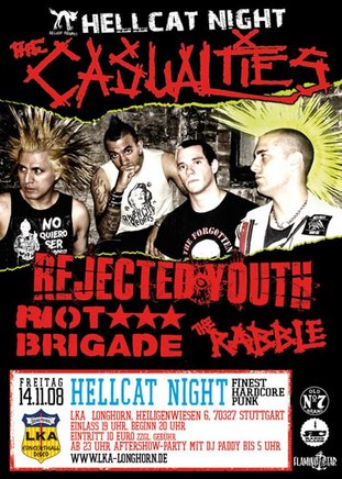 But after only one year Matze and Keks decided to go on with their project and found with Andy Chaos on guitar and Sancho on bass, some pretty cool new bandmembers. In the beginning nobody really knew how people would react to this reunion. But, contrary to expectations, 2007 was the best year for Rejected Youth since they started their project in 1998! Their new songs and record „Public Disorder“ (Concrete Jungle Records / msm1279.Records / Broken Silence) burst like a bombshell and after only a few month this record became the bestseller – for Rejected Youth and Concrete Jungle Records! Nearly every magazine wrote, that this is the best album Rejected Youth had ever recorded. But not only the new record was a higlight – Muttis Booking offered them to join The Unseen on their European Tour. And of course they accepted! Although the whole tour was a resounding success - the show in Nürnberg (their hometown) was the climax: 700 people - sold out!