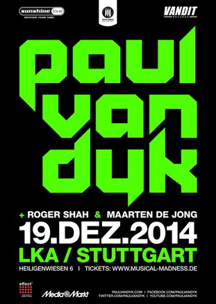 Endlich ist es soweit! PAUL VAN DYK kommt nach Stuttgart. Seit 20 Jahren reist PVD um die ganzen Welt um seine Fans zu begeistern und am 19. Dezember macht er halt im LKA in Stuttgart Wangen. Paul hat mittlerweile sechs Studio-Alben veröffentlicht und remixte Songs von internationalen Künstlern wie Justin Timberlake, New Order und U2. Er hat bislang über 3,5 Millionen Tonträger verkauft, wurde zweimal in Folge zum „No. 1 DJ in the World“ gekürt, für einen Grammy nominiert und begeistert mit seinen Live-Auftritten weltweit Hunderttausende von Fans. Zum zwanzigjährigen Jubiläum des Berliner Mauerfalls produzierte Paul die Hymne „We Are One“ und spielte als Stargast live am Brandenburger Tor.