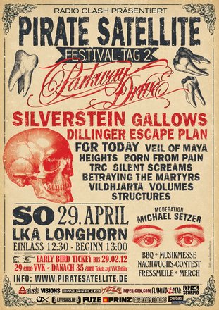 Nach dem großartigen Konzert 2010 im Lka Longhorn wollten Parkway Drive auf Ihrer Europa Tour 2012 auch in Stuttgart wieder halt machen Wir freuen uns ganz besonders, daß die Band als Headliner des Pirate Satellites am 2.Tag im Lka Longhorn zugesagt hat. Weitere namhafte Bands werden Parkway Drive folgen. Wir halten Euch auf dem Laufenden.