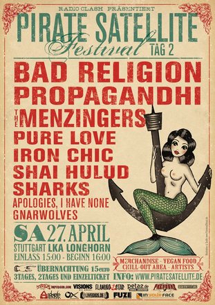 Unfassbar gut finden wir, dass Bad Religion uns die Ehre erweisen unser noch junges Festival zu headlinen. Die Punkrock-Legende aus Kalifornien nutzt die Gelegenheit ihr neues Album vorzustellen. Mit ein Grund für Ihre Reise nach Stuttgart war auch die Zusage der zweiten Punkrock Größe Propagandhi: Beide Bands haben noch nie zusammen ein Festival gespielt und freuen sich auf den gemeinsamen Auftritt. Shai Hulud / Iron Chic / Sharks / Apologies,I have none und Gnarwolves unterstreichen als weitere Bestätigung das einmalige Line Up am Samstag.