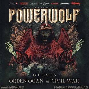 Die Wölfe sind zurück! Macht euch bereit für POWERWOLF und die Wolfsnächte 2015! Zwei Jahre nach "Preachers Of The Night" ist das Rudel um Attila Dorn bereit für den nächsten Metal-Kreuzzug. Im Gepäck werden sie neue Songs von ihrem kommenden Album haben und natürlich alle Power Metal-Hymnen von "Saturday Satan" über "Werewolves Of Armenia" bis zu "Amen & Attack". Das wird die metallische Messe des Jahres, also seid dabei! Freut euch außerdem auf großartige Gäste: Die Power Metal-Senkrechtstarter ORDEN OGAN und CIVIL WAR (Ex-Sabaton) sind mit von der Partie! Sichert euch noch heute eure Karten für die Wolfsnächte 2015!