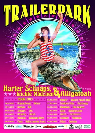 Aufgepasst! Basti, Timi Hendrix, Alligatoah und Sudden steigen wieder in ihren Trailerpark-Tourbus und machen sich auf, um den Untergang des Abendlandes ein bisschen zu beschleunigen. Im Gepäck haben sie eine Selektion aller handelsüblichen Opiate und ihr neues Album, welches im September erscheinen wird. Eine Boyband, die schon jetzt physisch und psychisch noch zerstörter ist, als jede andere Boyband am Ende der Karriere. Das ist Trailerpark. Der Rausch, der Exzess, die halbschönen Groupies, Rock´n Roll, wie er echter nicht sein kann! Trailerpark, auch bekannt als Crackstreet Boys sind keine herkömmliche Boyband, die durch ausgefeilte Choreographien oder überladene Lichtshows besticht, sondern anders zu überzeugen weiß: Fragwürdige Outfits, Lamas mit Hüten und ach ja genau: gute Musik.