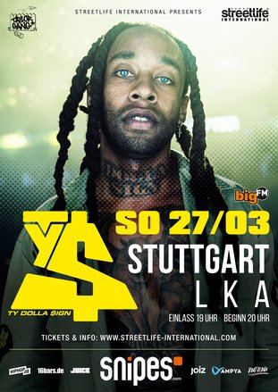 Ty Dolla $ign Support: Krept & Konan Zur kommenden April Tour von Ty Dolla $ wird es Ende März jeweils eine Zusatzshow in Berlin und Stuttgart geben! Der g rammy - nominierte Sänger, Songwriter & Producer sorgte in den letzten Jahren mit den Gold prämierten Singles wie „Paranoid (feat. B.o.B. )“ & „Or Nah (feat. Wiz Khalifa & The Weeknd)“ & unzähligen Features für Aufsehen. Sein Debütalbum „Free TC“ erschien am 13. November letzten Jahres über Warner Music und ist Tys Bruder gewidmet, der lebenslang hinter Gittern sitzt. Mit „ Blasé “ ft . Future & Rae Sremmurd erschien erst ein klassischer Clubbanger, aber das Album überrascht mit einer ungeahnten musikalischen Vielfalt und wa rtet mit Kendrick Lamar, Trey Songz, Kanye West und weiteren hochkarätigen Gästen auf. Eine stimmige Symbiose aus Rap & RnB machen Tys Sound unverwechselbar und werden live d urch eine energiegeladene Show perfekt umgesetzt. Für die April - Termine wird a ls Support das gefeierte Grime - Duo Krept & Konan aus London mit dabei sein .