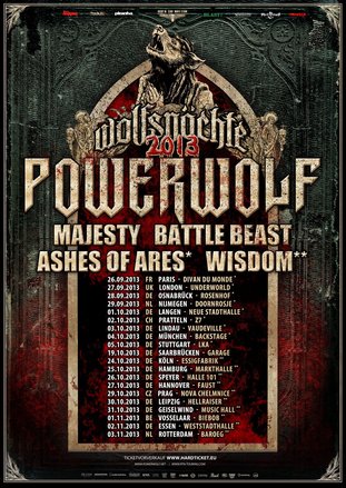 Die Wölfe sind zurück! POWERWOLF haben nach 7 Monaten harter Arbeit unter Blut und Schweiß im Studio Fredman in Göteborg/Schweden den Mix zum Nachfolger von "Blood of the Saints" abgeschlossen. Macht euch bereit für ein neues monströses Meisterwerk! In Kürze gibt es weitere Updates zum kommenden neuen Longplayer! Nach dem riesigen Erfolg der letztjährigen "Wolfsnächte Tour" werden die Wölfe unter dem Banner "Wolfsnächte Tour 2013" auch dieses Jahr wieder quer durch Europa ziehen!