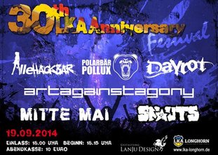 Tribute-Festival der LKA-Community ! Mit einer rauschenden Party möchte sich nicht nur die ganze Band-Gemeinde bei den Machern und Vordenkern des LKA bedanken, sondern den 30jährigen Geburtstag dieser einzigartigen Location mitfeiern. Folgende Acts aus dem Freundeskreis sind ins Line-Up bestätigt: