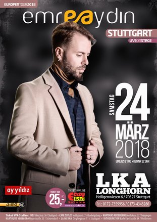 EMRE AYDIN KONZERT INFO Datum: 24.03.2018 Einlass: 21.00 Beginn: 22.00 Info Tel: 01727359956 Emre Aydin ist ein türkischer Sänger und Songwriter. Mit seiner damaligen Band ,,6. Cadde" gewann Emre Aydin 2002 den Sing Your Song Musik Contest. 2004 erschien das erste Album von ,,6. Cadde dannach machte er erste Schritte in Richtung einer Solo-Karriere.