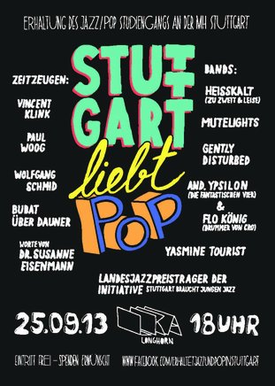 Mit Ihrer/Eurer Anwesenheit zeigt ihr, dass Stuttgart junge Musik braucht und der Jazz/Pop Studiengang unentbehrlich ist!