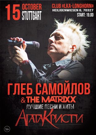 Der Oktober 2017 wird Überraschung für Fans Band „The Matrixx“ in Europa! Legendäre Gleb Samojlow mit der Band The Matrixx wird drei Konzerte in Deutschland und nur einen – in Tschechien geben. Dieses Ereignis wird wahrhaftig historisch, es ist der erste Besuch der Bänd in diese Länder.